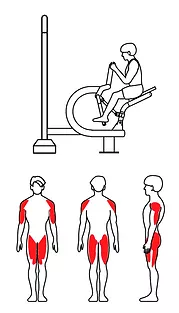 Сидя на стуле с ногами на подножках, возьмитесь за ручки. Нажмите на подножки, потянув ручки на себя, пока не выпрямите ноги. Затем вернитесь в исходное положение контролируемым движением