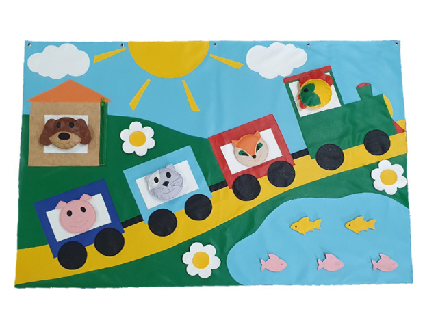 Звуковое панно "Веселый паровозик" - это игровой сенсорный коврик, который помогает развивать речь, слух, мелкую моторику рук, внимательность и усидчивость. Во время игры ребенок научится различать звуки, цвета, формы, лево-право, верх-низ. Съемные игровые фигуры в виде животных*, рыбок и цветов крепятся к ковру при помощи липучки, что позволяет менять их местами, прятать в домик или купать! Игры со звуковым панно научат распознавать голоса животных, а при повторении этих звуков - развивать речь.